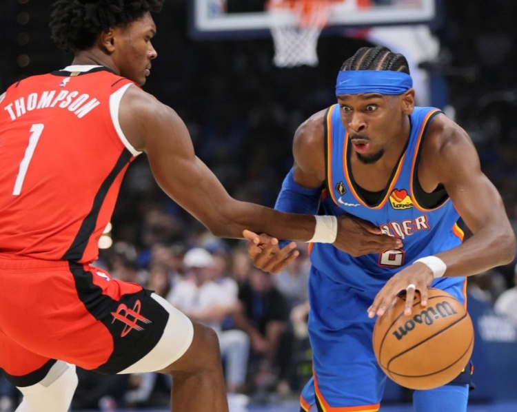 雷霆没了切特和杰威,亚历山大又被夹击,得靠卡森和卡鲁索持球;火箭用上联防,逼迫卡鲁索出手。