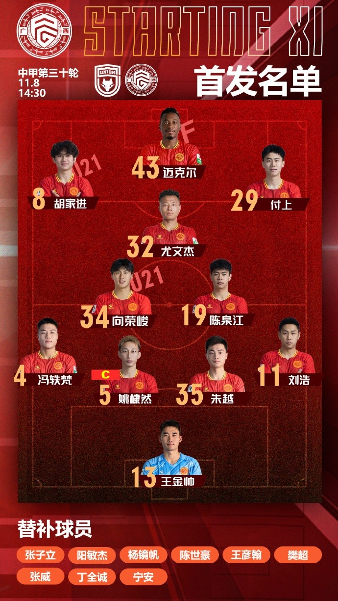 2025华润饮料中甲联赛第30轮,广西平果国晶客战陕西联合首发名单